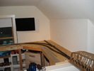 - The room is roughly 50x20 feet, with low ceilings at the edges of the 20' width making an interesting design